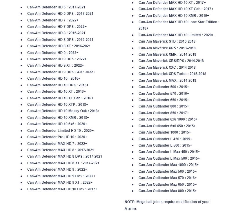 - Can-Am Defender MAX HD 10 XT Cab : 2017+