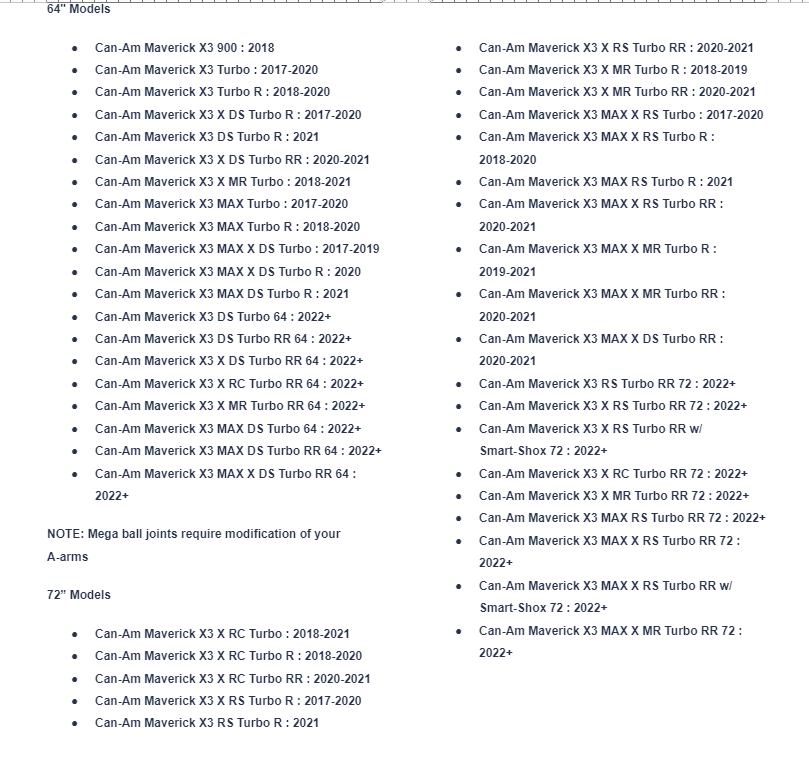 - Can-Am Maverick X3 X RC Turbo : 2018-2021
