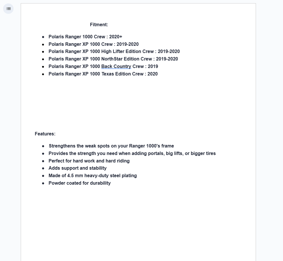 This kit is made with 4.5 mm heavy-duty steel, giving your Ranger 1000 all the frame support it needs and then some. It’s powder coated for durability and longevity, ensuring top-notch performance ride after ride. Forget about taking it easy for fear of bending your frame. Install this frame stiffener and gusset kit on your machine and you’re ready to hit the trails, no matter how hard the trails hit back.