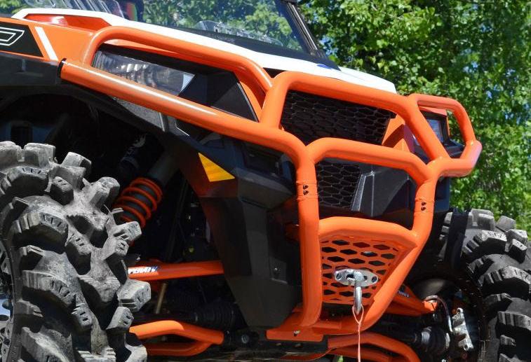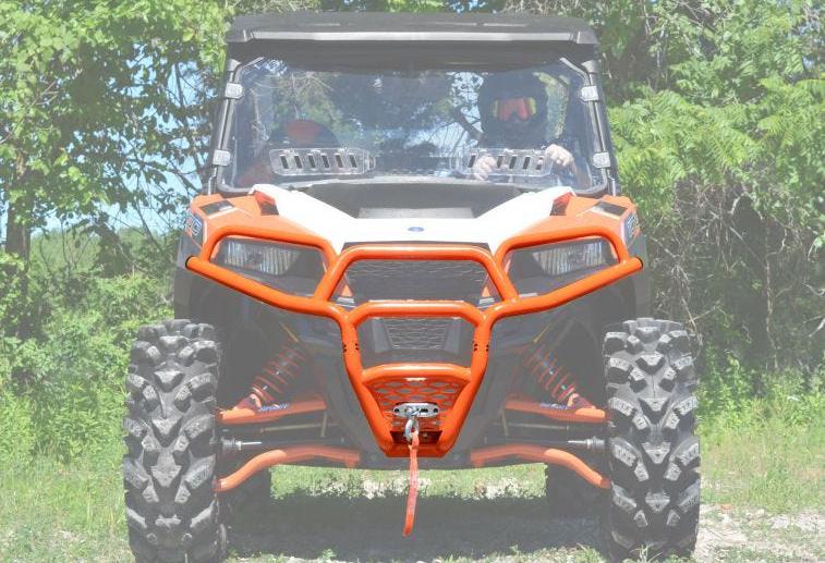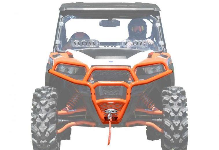 Customize your Polaris General with a front bumper from SuperATV. This unique and aggressive design is carefully crafted to follow the contour of your machine. It provides a sleek and stylish look while giving you ultimate protection for the front of your machine. This rugged bumper features a UV resistant, powder coated finish that’s long lasting and compliments the cage and body. Multiple colors are available to match your machine. Constructed of 1.25″ heavy-duty tubing, its bolt-on mounting style is easy to install and includes all necessary hardware and instructions.