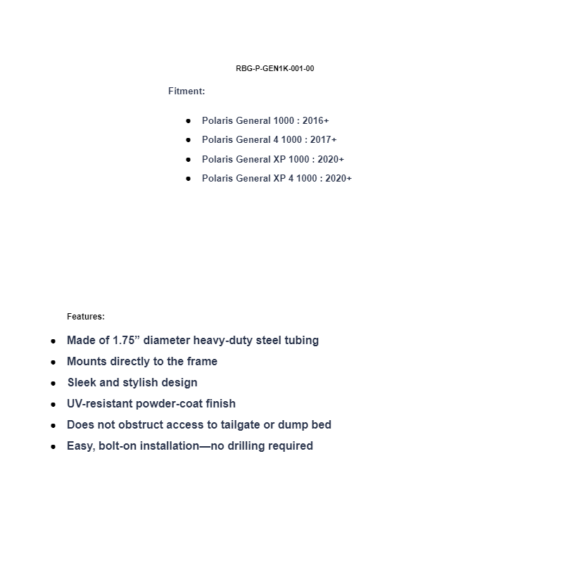 Tough jobs and rough riding are all part of the game for your Polaris General. But just because it’s rugged doesn’t mean this machine is impervious to dents and scratches. Protect your back end with a SuperATV Rear Bumper. It fends off rocks, stumps, and whatever else you may accidentally back into while you’re on the go. Installation is super easy, and did we mention it makes your General look even tougher?