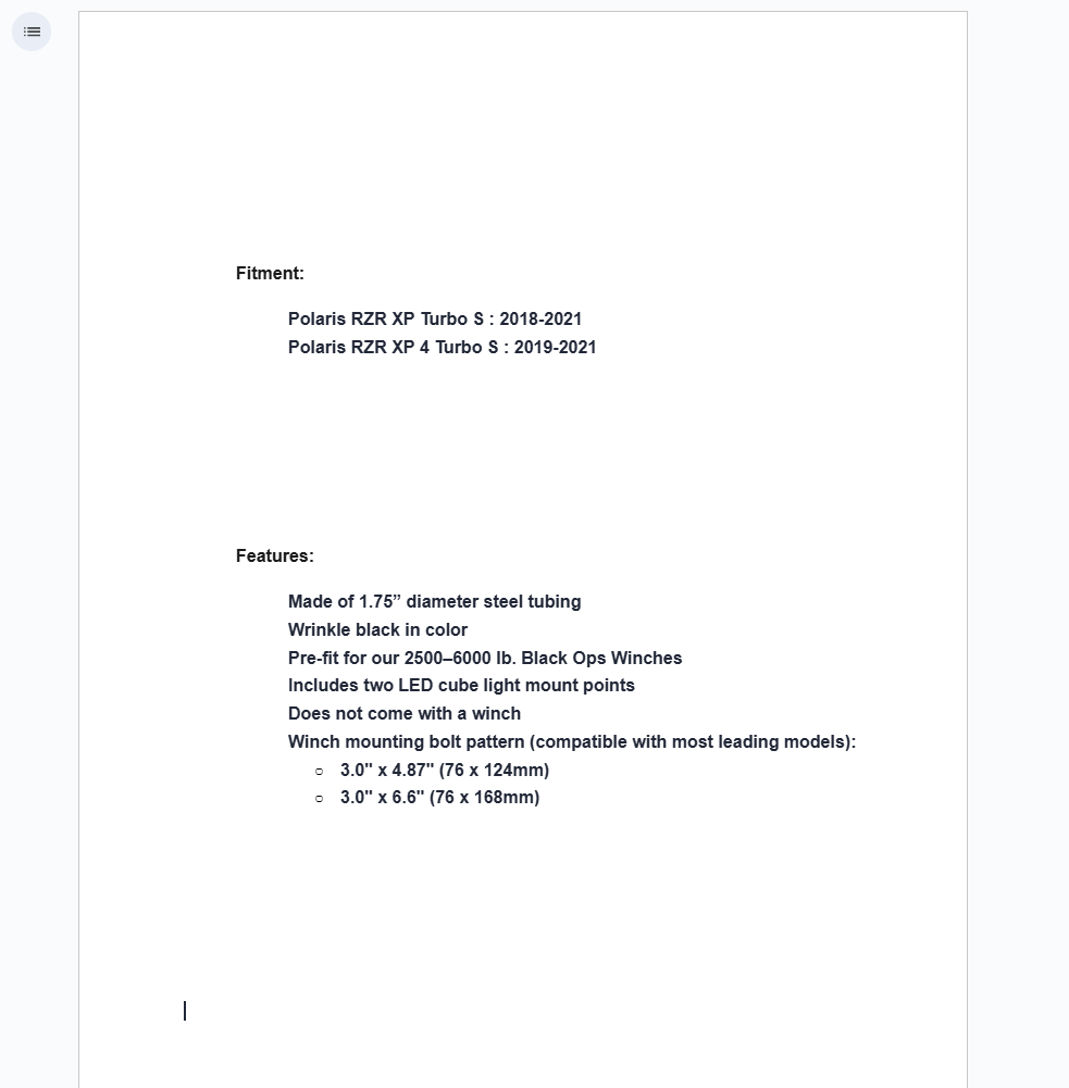 - Winch mounting bolt pattern (compatible with most leading models):