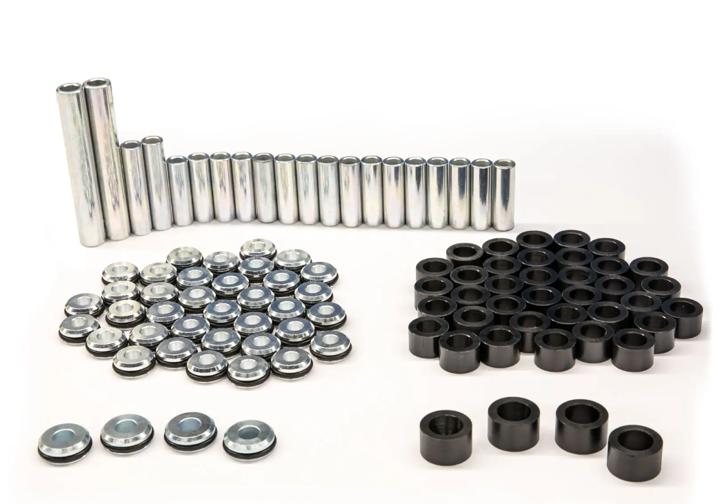 Our oil-filled and self-lubricating UHMW bushings produce less friction, resulting in a smoother ride. UHMW is the best material for longevity and durability thanks to its low-wear characteristics. These bushings are CNC machined for a precise fit and feature O-ring pivot caps that keep out mud, water, and debris.