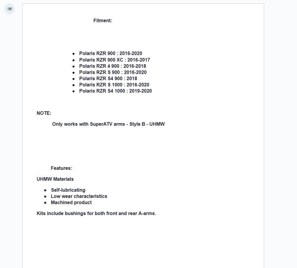 - Only works with SuperATV arms – Style B – UHMW