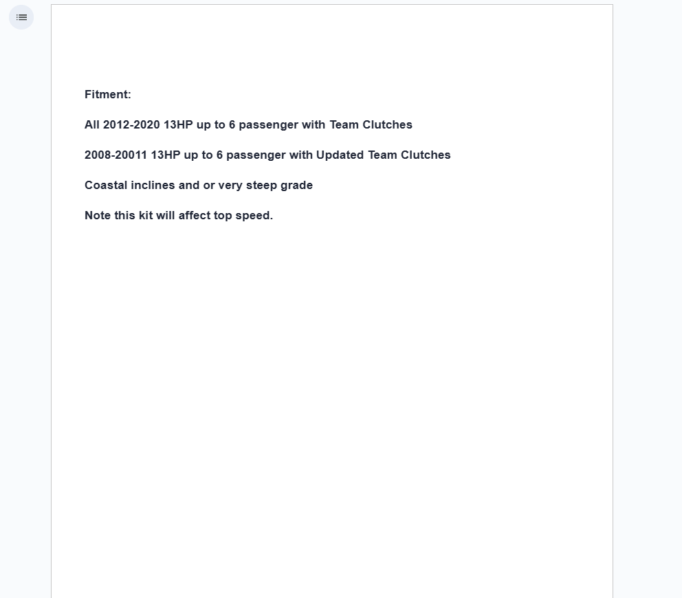 All 2012-2020 13HP up to 6 passenger with Team Clutches