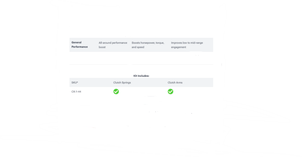 Our Rev1 Clutch Kit makes your factory clutch match your specific riding style. Instead of a toned-down, catch-all clutch, you’ll have a clutch that’s designed for faster engagement and punchier power. The clutch springs are Built for Battle, giving you reliable, consistent power and performance in the most demanding conditions. Our clutch arms come preassembled and weighted to give you dyno-proven performance boosts. That means maximum throttle response, reduced belt and clutch slippage, improved low to mid-range engagement, and increased RPMs! Get ready to hit the gas—it’ll feel like a whole new ride.