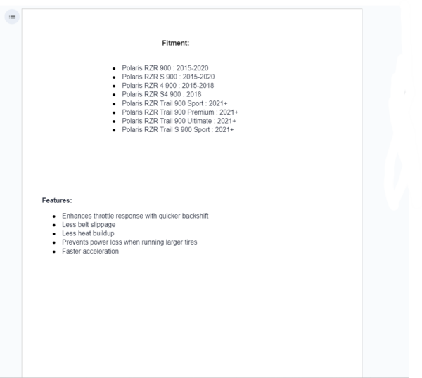 A stock clutch is designed to work just good enough to get you through tame terrain. Throw on bigger tires, added weight or a change in elevation and you’ll see a noticeable decrease in performance. At SuperATV, we’ve spent countless hours on the Dyno fine tuning our Rev1 Clutch Kit to provide a product that will address all of these conditions allowing optimal performance from your ride!