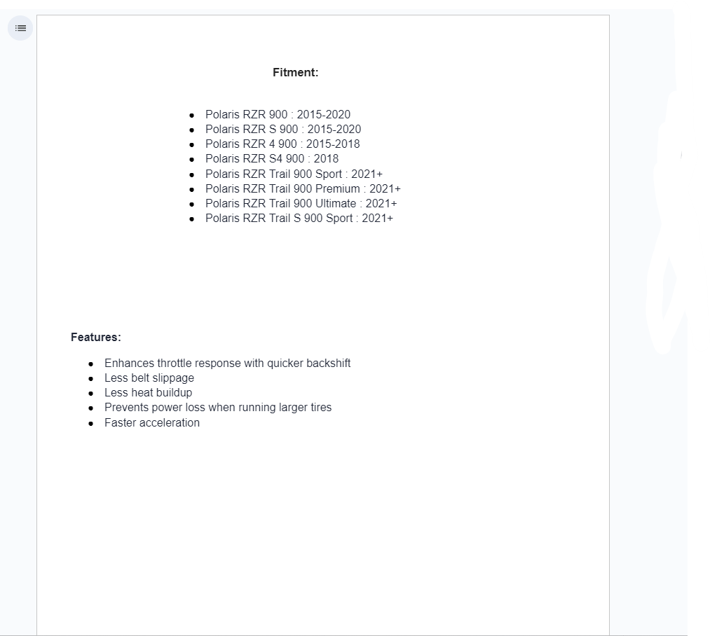 - Polaris RZR 900 : 2015-2020