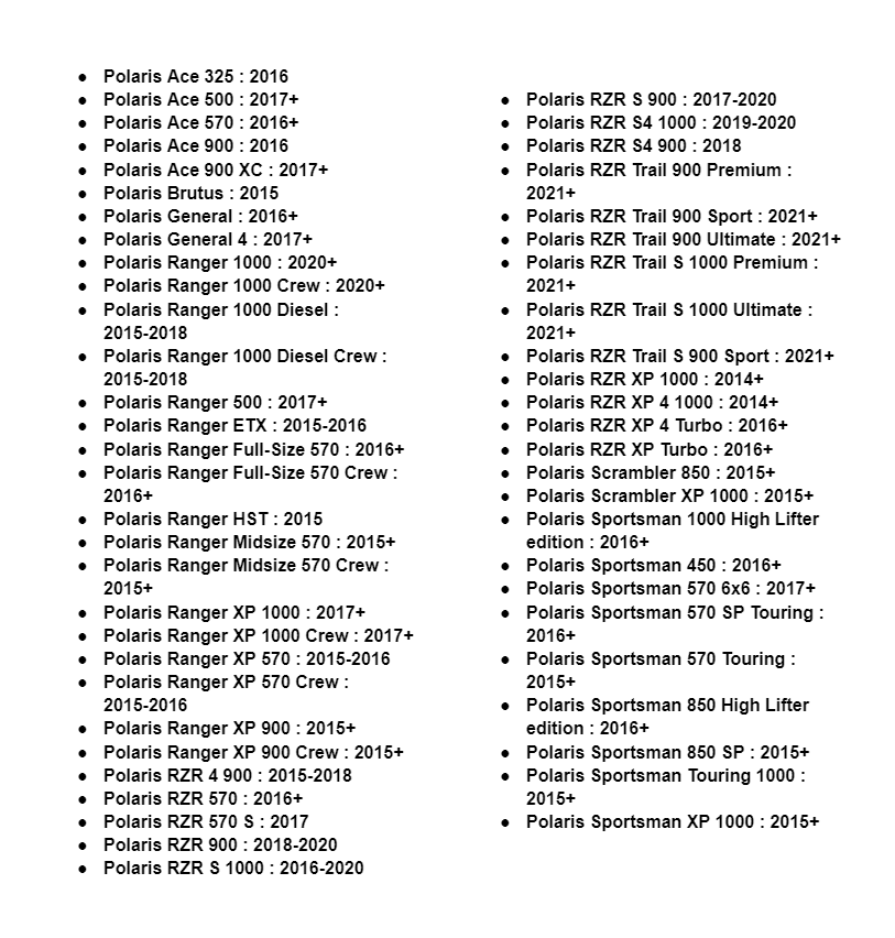 - Polaris RZR Trail S 1000 Ultimate : 2021+