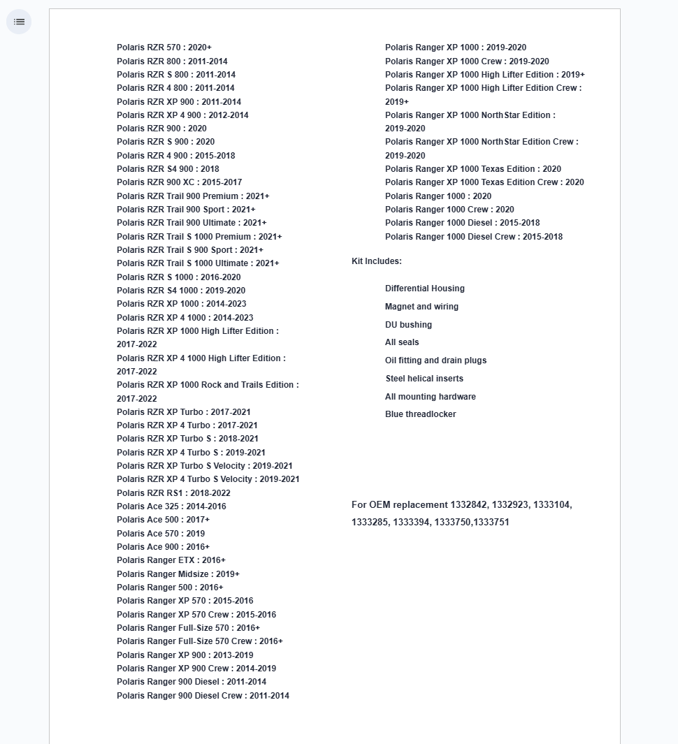 - Polaris Ranger 1000 Diesel : 2015-2018