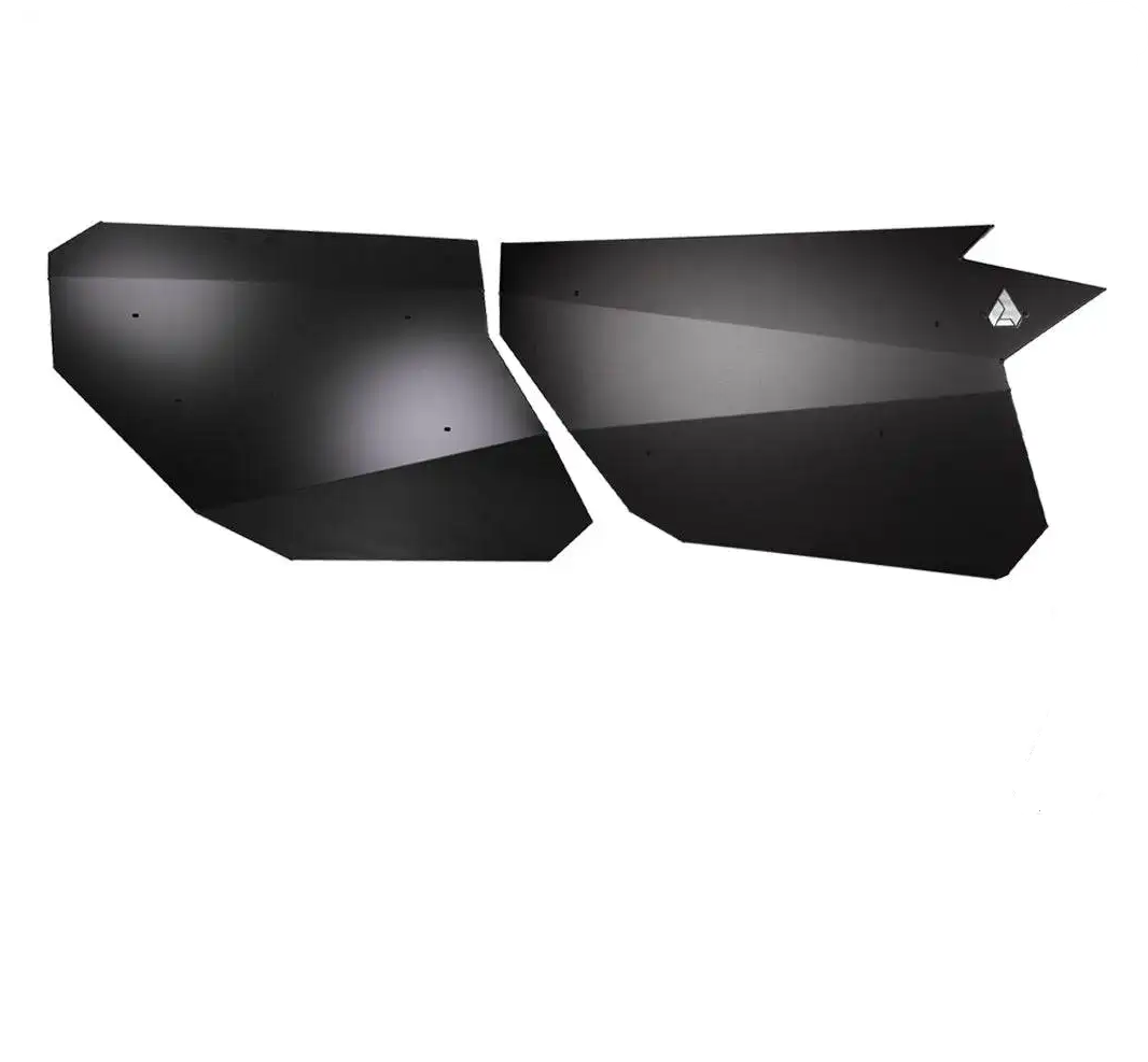 The Assault Industries F-22 Max doors for the 4 seater Can Am Maverick X3 Max feature a simple ultra rigid, light bending angular design and mounts directly to the OEM door frame with no drilling or modification. The doors are pressed from aluminum sheet metal, then bent and TIG welded along edges for enhanced structural rigidity.