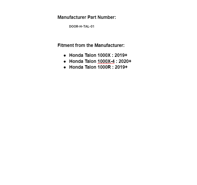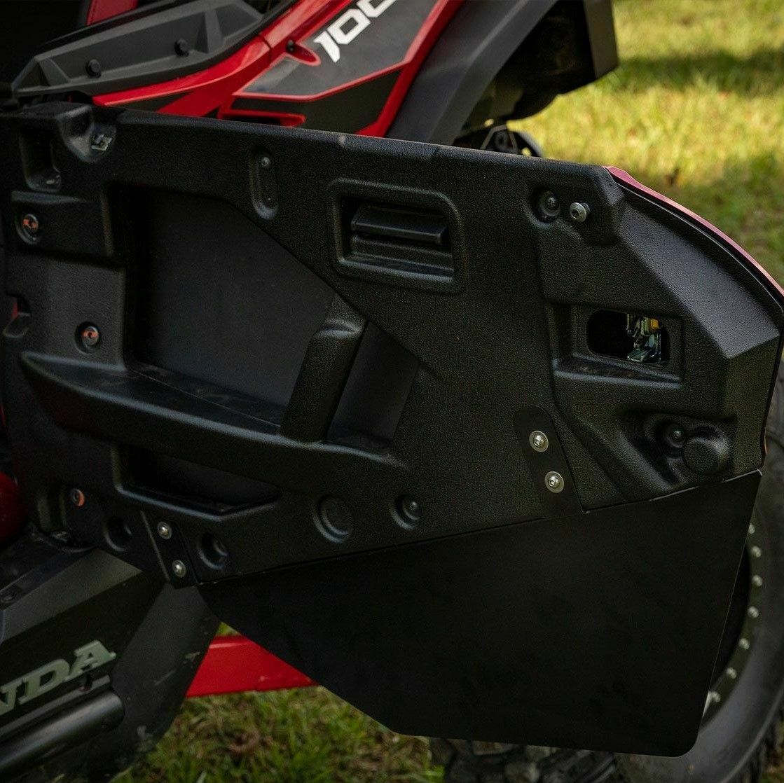 SuperATV’s Honda Talon 1000R Aluminum Lower Doors are lightweight and durable. They’re contoured to match your Talon’s curves, giving it a sleek look. The fit is tight and rattle free, so there’s no unwanted noise while riding. These lower panels are easy to install and are designed to work with your OEM doors. Each lower door piece is constructed of a tough, lightweight aluminum and powder coated for maximum protection and durability. They keep the trail out so you can focus on keeping the pedal down.