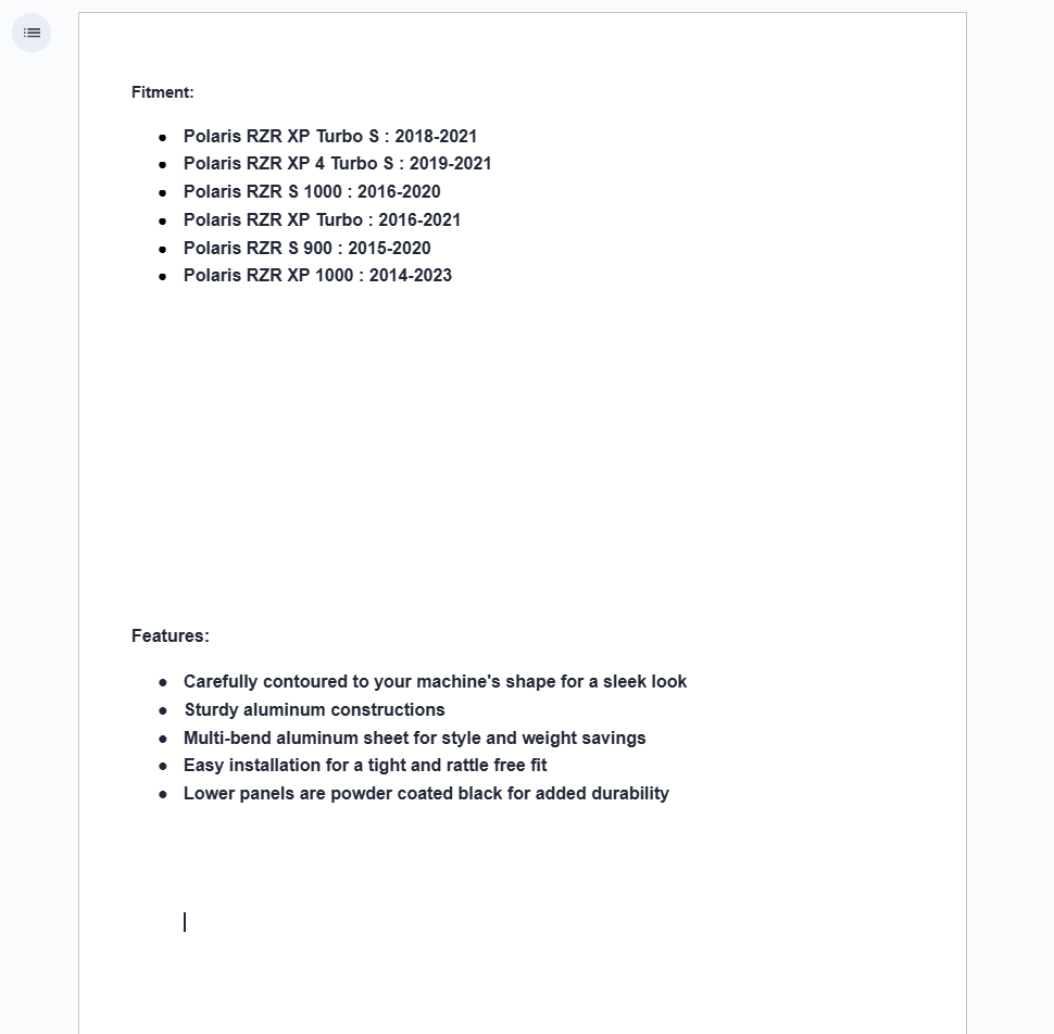 When you buy a set of these panels, you buy SuperATV’s commitment to quality as well. Our aluminum panels are cut and bent perfectly to make installation easy and snug. Plus we provide you with all required hardware and the UV-resistant powder coating adds durability.