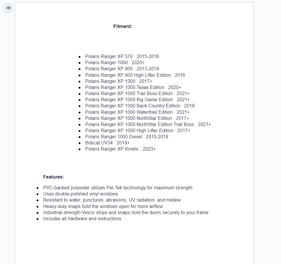 Our soft upper doors aren’t weak thanks to Pel-Tek Technology. The PVC-backed polyester material is puncture, tear, and abrasion resistant, and it protects against mildew and UV rays too. The doors use Velcro and frame-mounted straps together to secure them tightly to your frame. Plus, they’re CNC cut and use advanced stitching to ensure a durable, perfectly-fitting construction you can rely on. And if you’re trailering your ride, you can use the included straps for extra security.