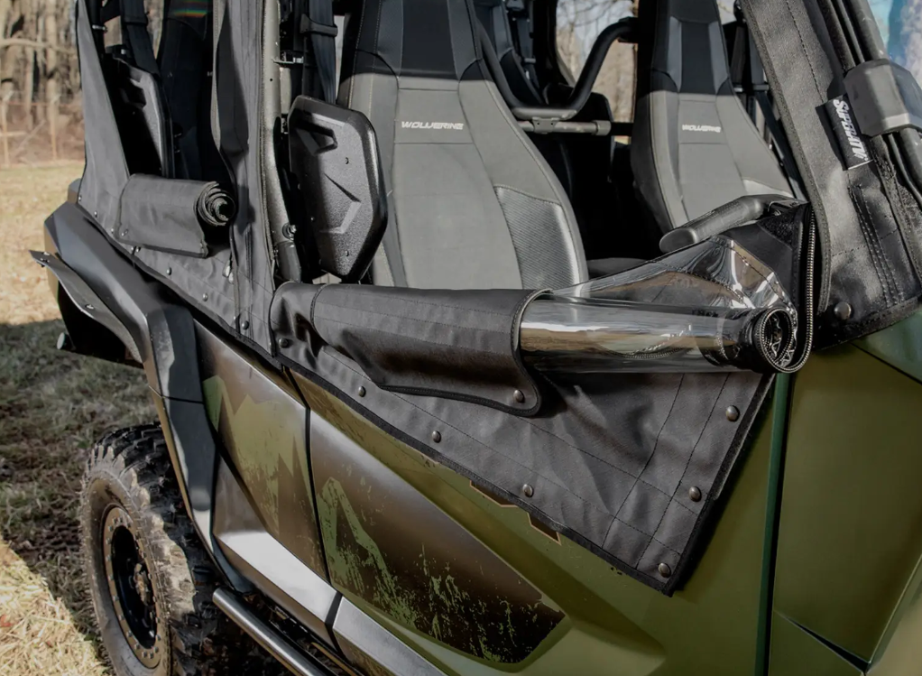 There’s nothing worse than missing quality trail time because the weather turned bad. A little rain never hurt anybody, but if it’s really coming down, you’ll need some extra protection to ride comfortably. That’s where SuperATV’s Primal Soft Cab Enclosure Upper Doors come in. Add these doors to your Yamaha Wolverine RMAX 1000 to shield you and your buddies from rain, mud, and cold weather. They’re designed using our premium Pel-Tek technology to be water resistant, versatile, and extra strong. You can even pair them with our windshields to boost your cab protection.