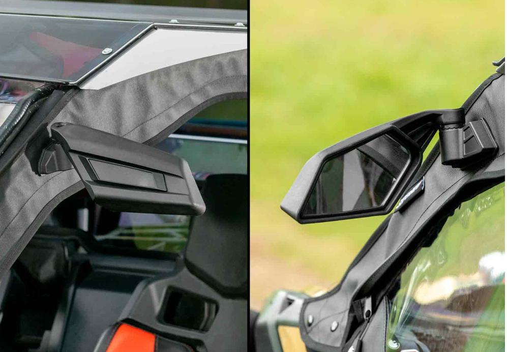 The durable aluminum frame attaches directly to your stock doors to transform them into true full doors that let you open and close them without unzipping them. The doors secure to the aluminum frame with heavy-duty Velcro and snaps so they won’t come off unless you take them off. And aluminum is lightweight too, so it won’t slow your X3 down. We even included precision cutouts for side mirrors! Now that’s an upgrade.