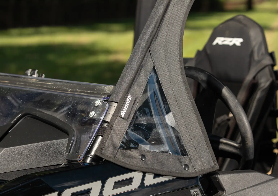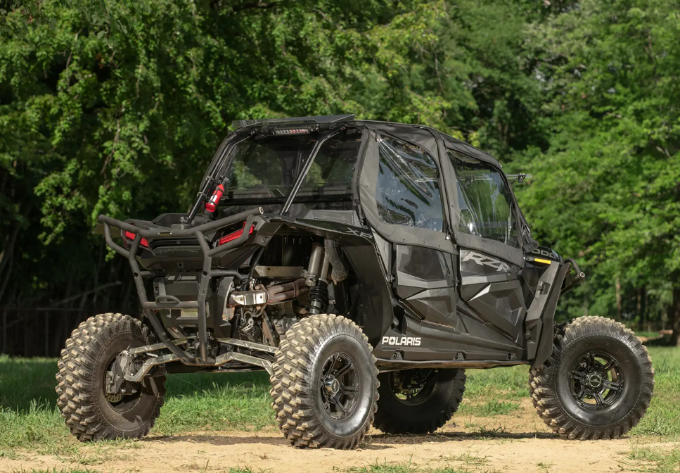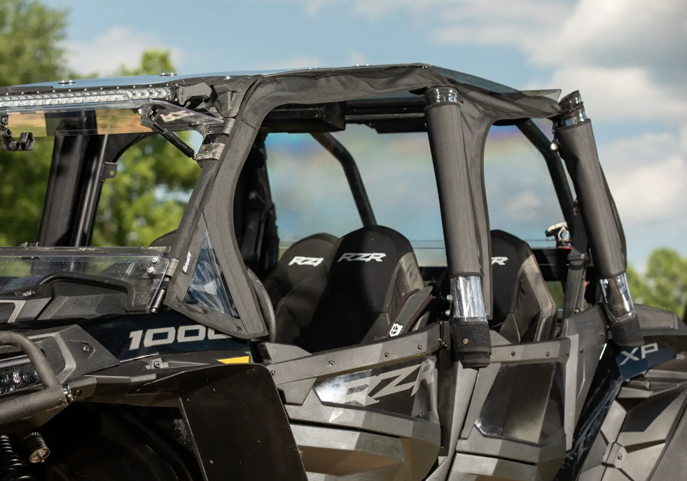 Don’t limit yourself to seasonal riding because of the weather. Ride in comfort year round with SuperATV’s Soft Cab Enclosure Upper Doors for your Polaris RZR XP 4 1000. Our Pel-Tek technology is best when it comes to battling all the elements. SuperATV soft cab doors are durable, waterproof, and easy to use. We’ve also made them compatible with our aluminum roof, polycarbonate windshield, and lower doors giving you the option of a full cab enclosure.