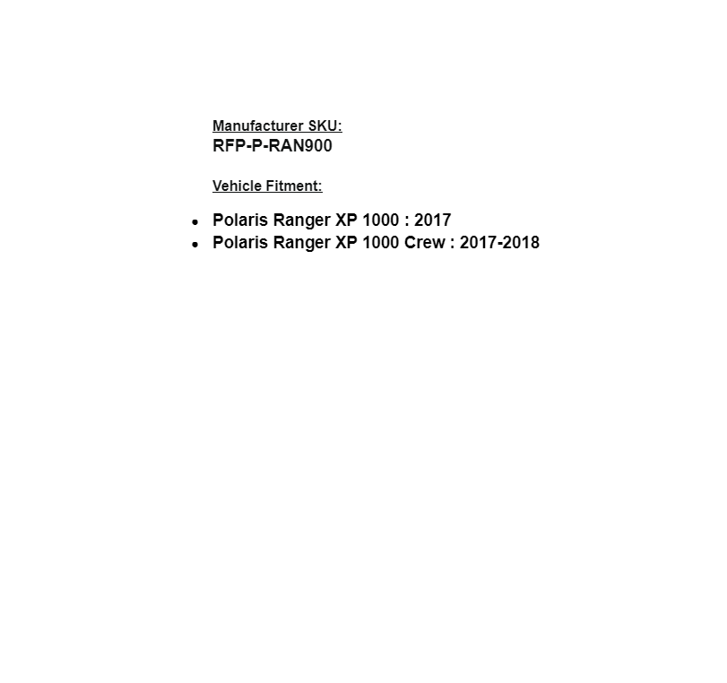 | Polaris | Ranger XP 1000 | -- | 2017 | |