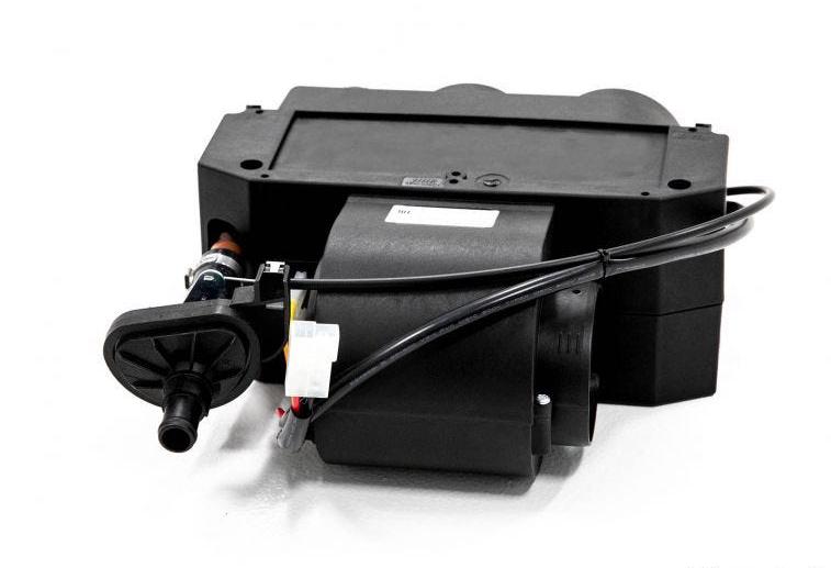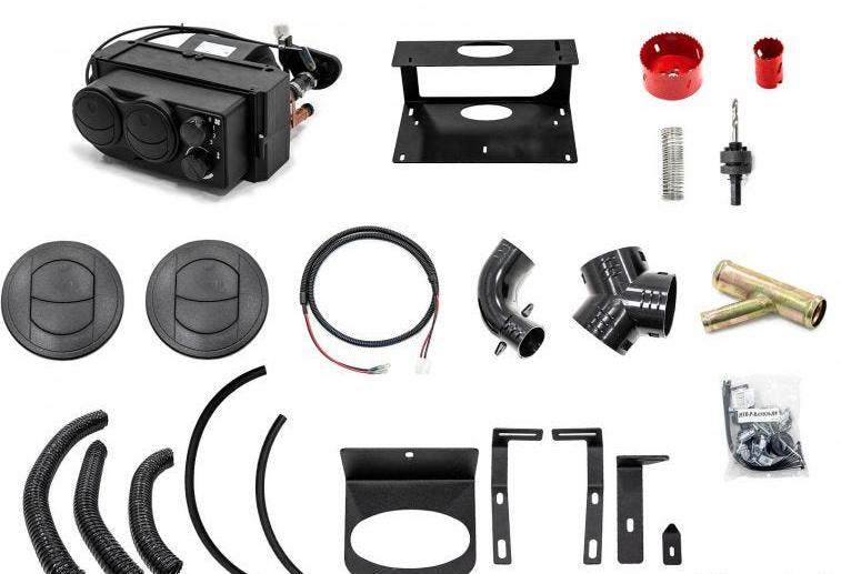 This heater mounts under the dash between the seats where it’s out of the way for both the passenger and the driver. It draws heat directly from the coolant lines, just like a traditional car heater.