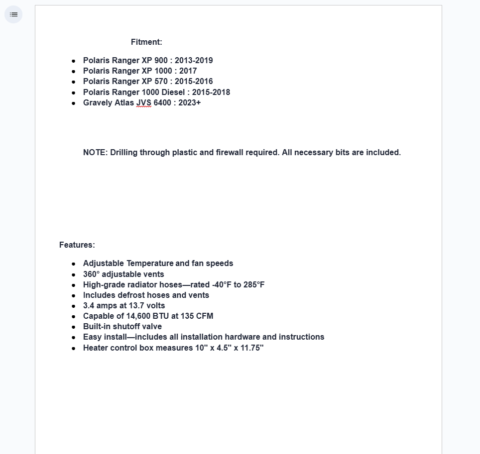 Install is so easy—our kit uses the Ranger 900’s own key-on and power terminals to make wiring a cinch. We include hoses, drill bits, and Ranger-specific mounting plates to make getting your heater up and running as easy as possible.