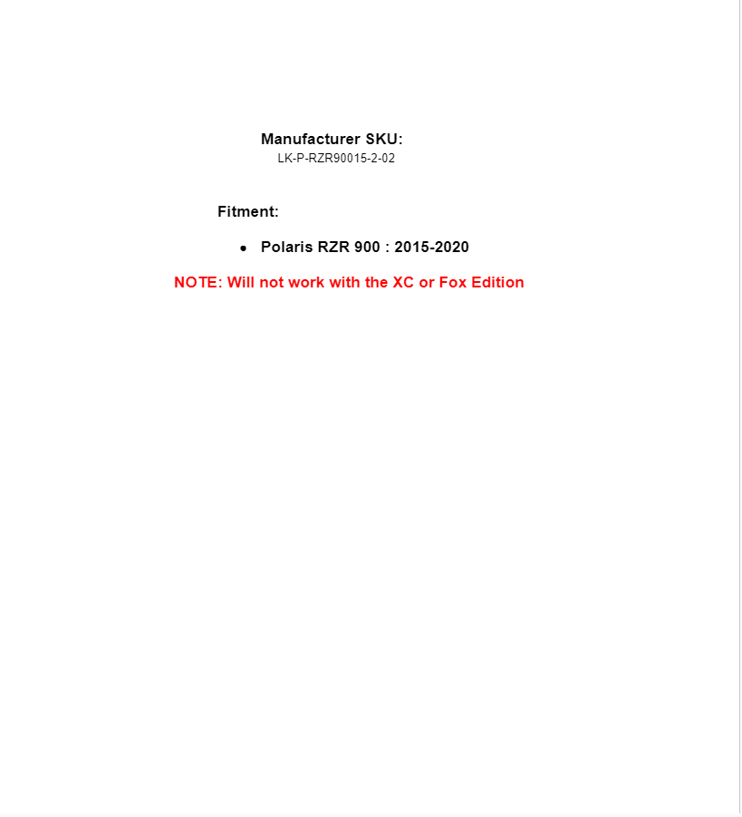 | Polaris | RZR 900 | EPS Fox Edition | 2020 | |