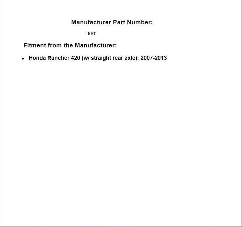 - Honda Rancher 420 (w/ straight rear axle): 2007-2013