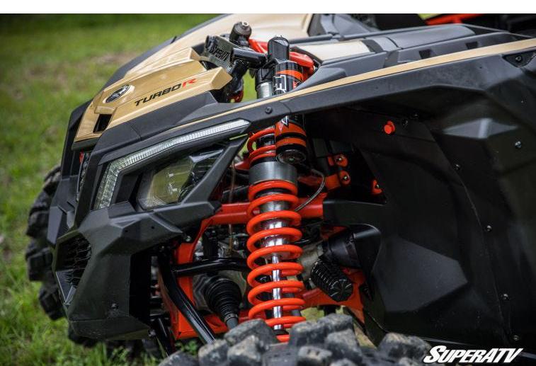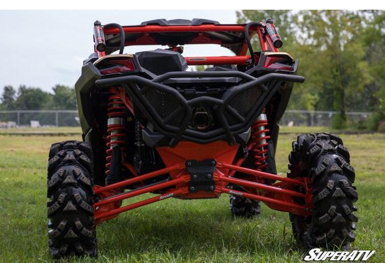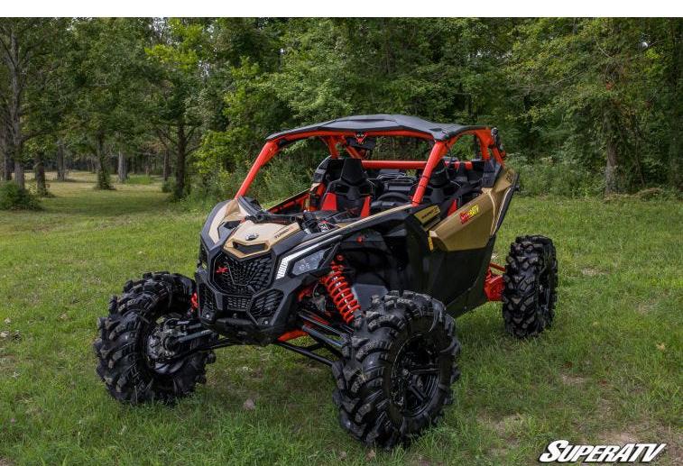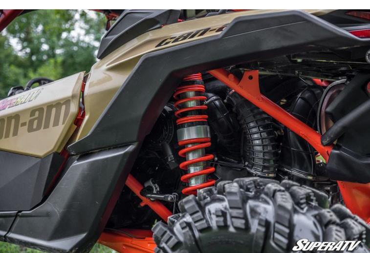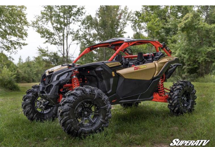 Taking your Can-Am Maverick X3 out for a spin results in dragging your skid plate across lots of logs and rocks. Save your undercarriage and tackle more difficult trails with a 3” Lift Kit from SuperATV. It measures true to size, so you get three more inches of ground clearance and enough tire clearance for up to 29.5” tires on 64” models and up to 32” tires on 72” models. Ride hard and ride higher—your lifted Maverick X3 lets you do more.