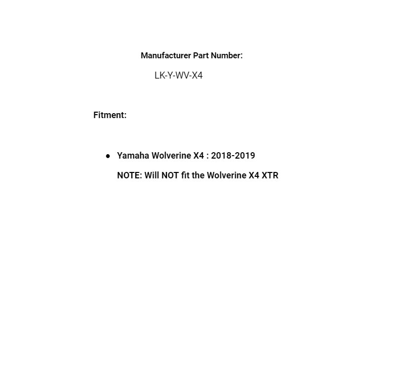 NOTE: Will NOT fit the Wolverine X4 XTR