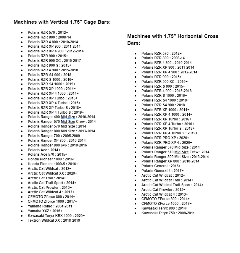 - Polaris RZR 900 XC : 2015-2017