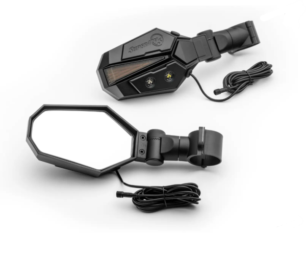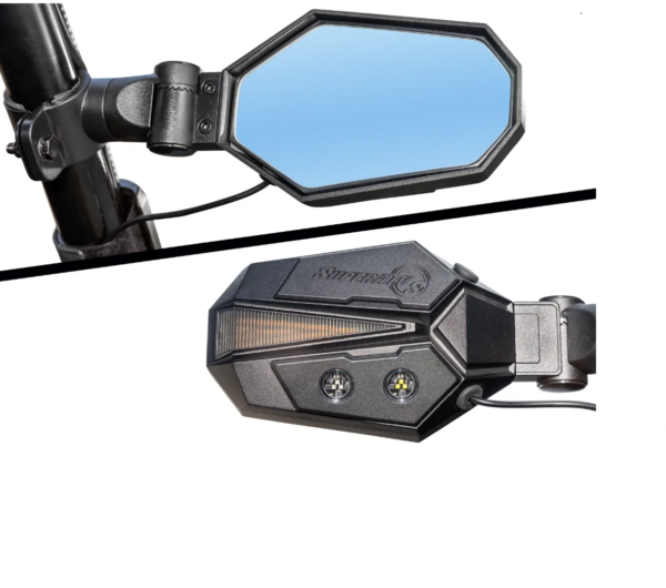 Upgrade your ride with these handy Lighted Side-View Mirrors. They give you a clear view of the trail behind you while the built-in lights illuminate the path ahead. And the lights can be used as standard white or bright green. Get even more use out of them with our Deluxe Turn Signal Kit!