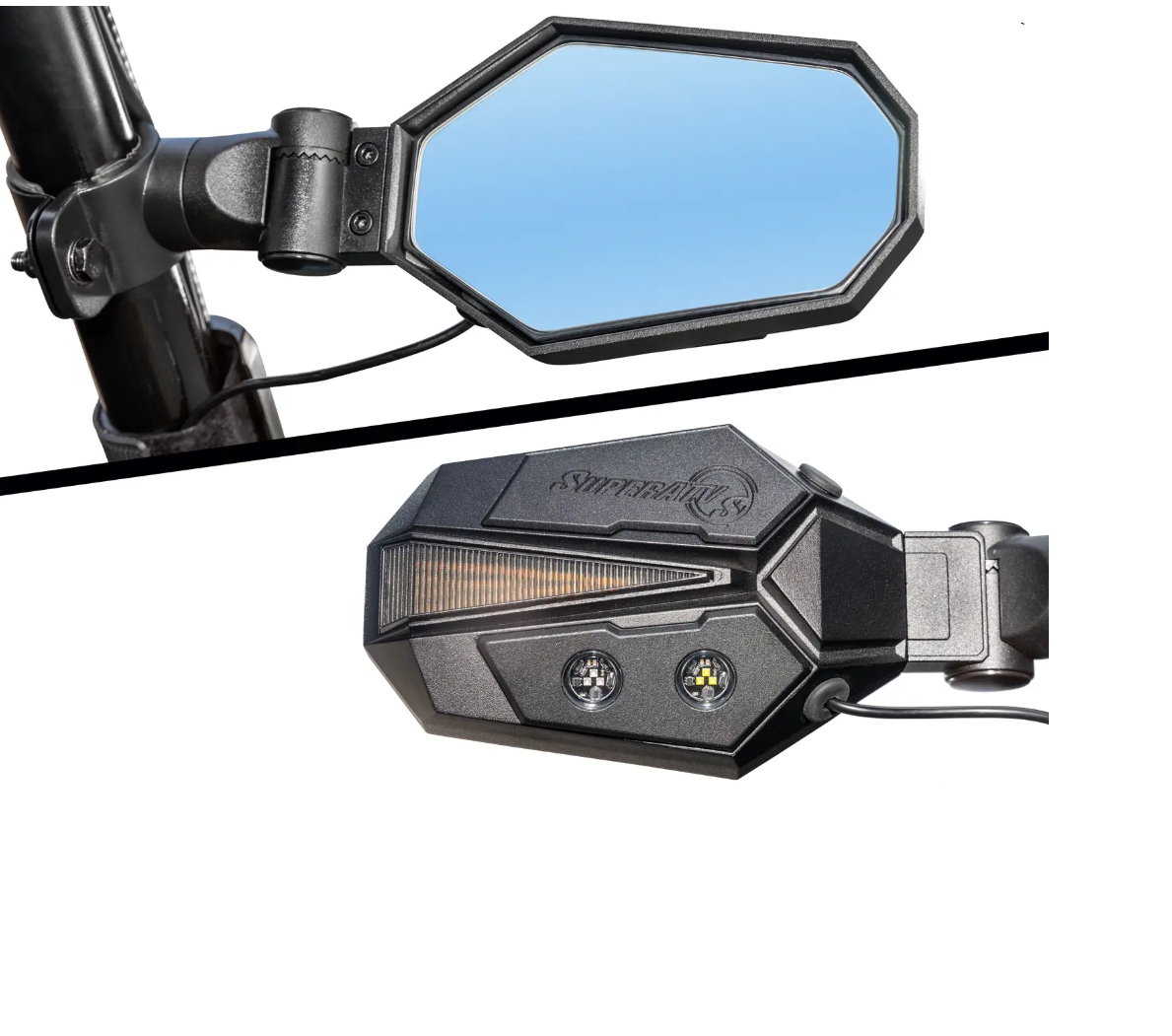 Use these lighted mirrors as turn signals with our Deluxe Turn Signal Kit. Wiring them up is straightforward—and they’ll blink in sync with any other connected light accessories. Now that’s pretty slick!