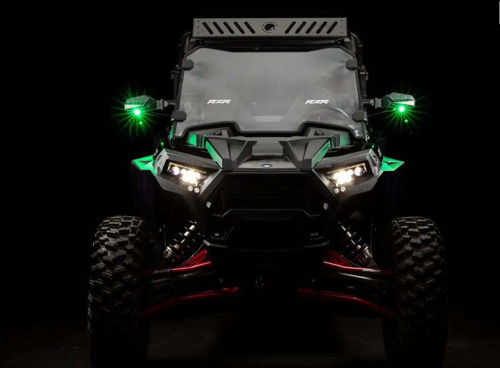 Upgrade your ride with these handy Lighted Side-View Mirrors. They give you a clear view of the trail behind you while the built-in lights illuminate the path ahead. And the lights can be used as standard white or bright green. Get even more use out of them with our Deluxe Turn Signal Kit!
