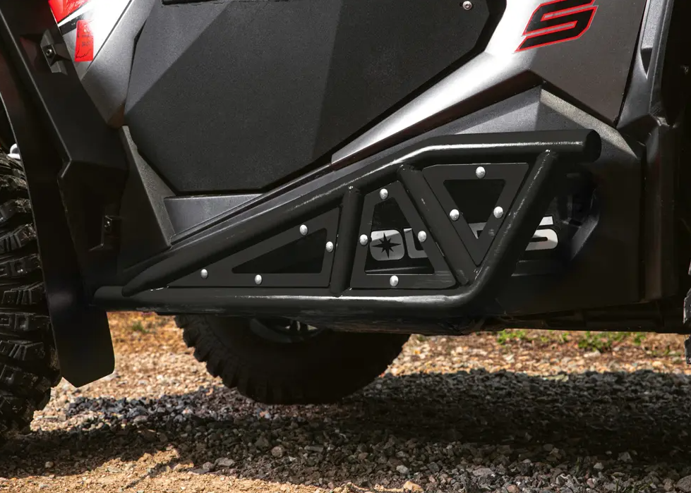 Protect and compliment your investment with a set of Polaris RZR Heavy-Duty Rock Sliders. These aggressive yet stylish Sliders feature a powder coated finish that is rugged enough to handle the most intense rides while protecting your RZR from rocks and other rough on the trail. Constructed of 1.75″ heavy-duty tubing, the bolt-on mounting style is easy to install and includes all necessary hardware and instructions.