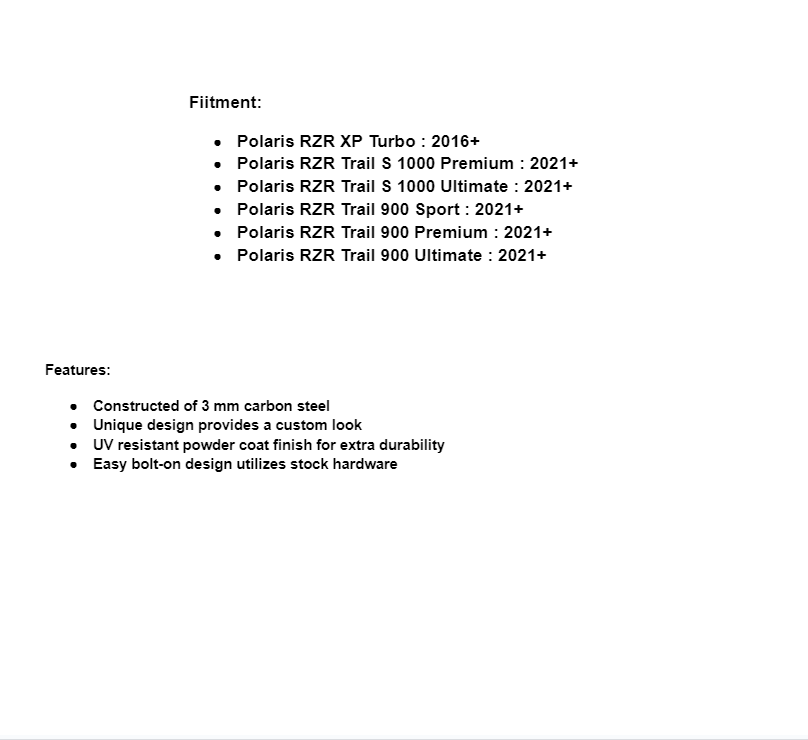 - Polaris RZR Trail 900 Sport : 2021+