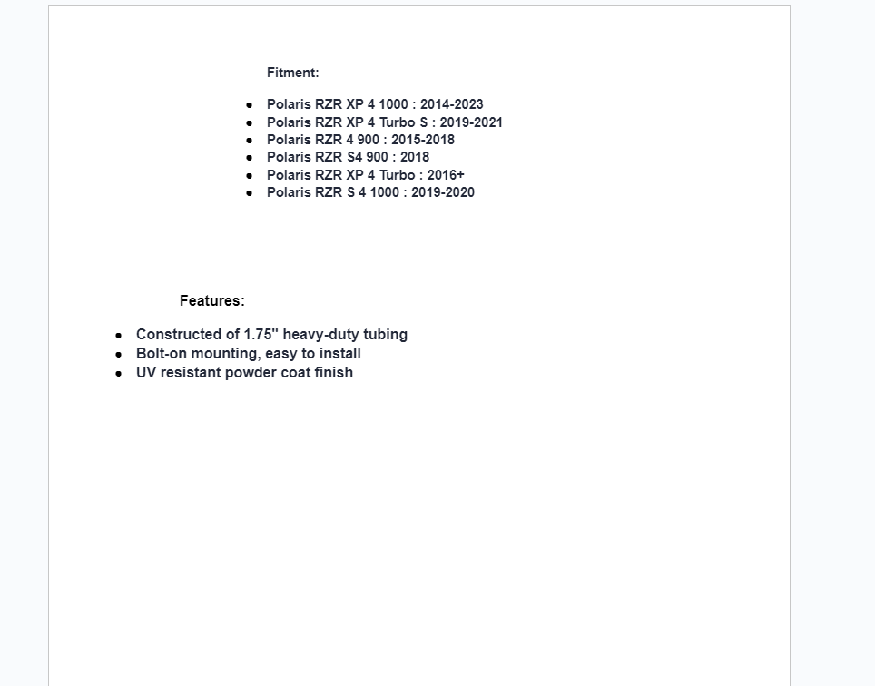 - Polaris RZR XP 4 Turbo S : 2019-2021