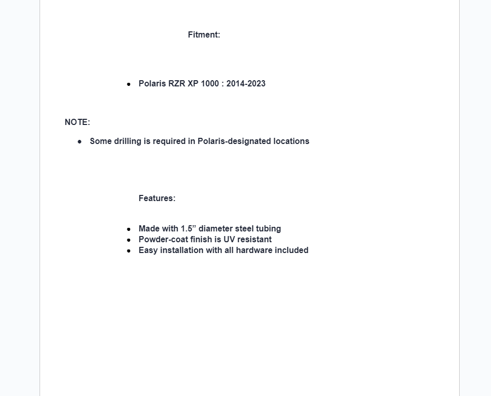 Our RZR tree kickers are built to stop trees, boulders, and anything else that attacks your UTV. With 1.5” diameter steel tubing, it’ll beat down obstacles and save your suspension and bodywork. They’re beefy and brutish so your RZR stays protected.