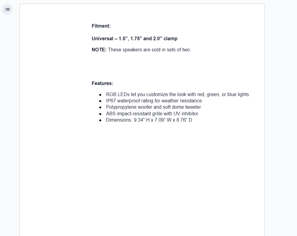 If you’re like us, you’ll keep riding no matter the weather—which is why we love that these UTV speakers feature an IP67 rating for water and dust resistance. Their durable, weatherproof design can withstand nearly any environment. The ABS impact-resistant grille is super tough and features UV inhibitors to prevent fading or wear over time. Every part of this speaker system exists to keep the tunes pumping ride after ride.
