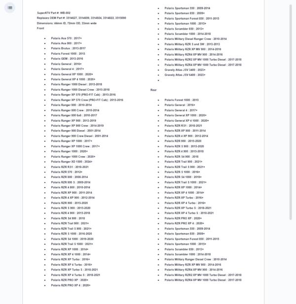 Have your weekend rides been marred by knocking noises or wheel vibration? If so, it might be time to take a look at those wheel bearings. Your stock ones can only go so many miles before they need to be replaced with something stronger. When you’re ready for a reliable replacement that looks great, fits perfectly, and won’t let you down, treat your Polaris UTV or ATV to SuperATV’s Front and Rear Wheel Bearings. It’s designed to give you a smoother ride, no matter where or how hard you ride.