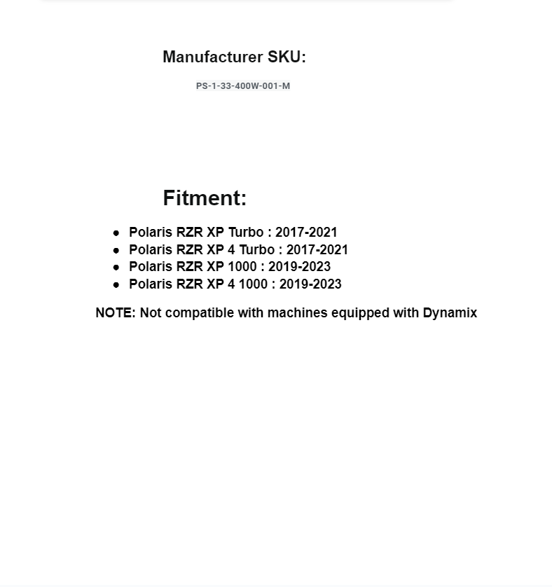 - Polaris RZR XP Turbo : 2017-2021