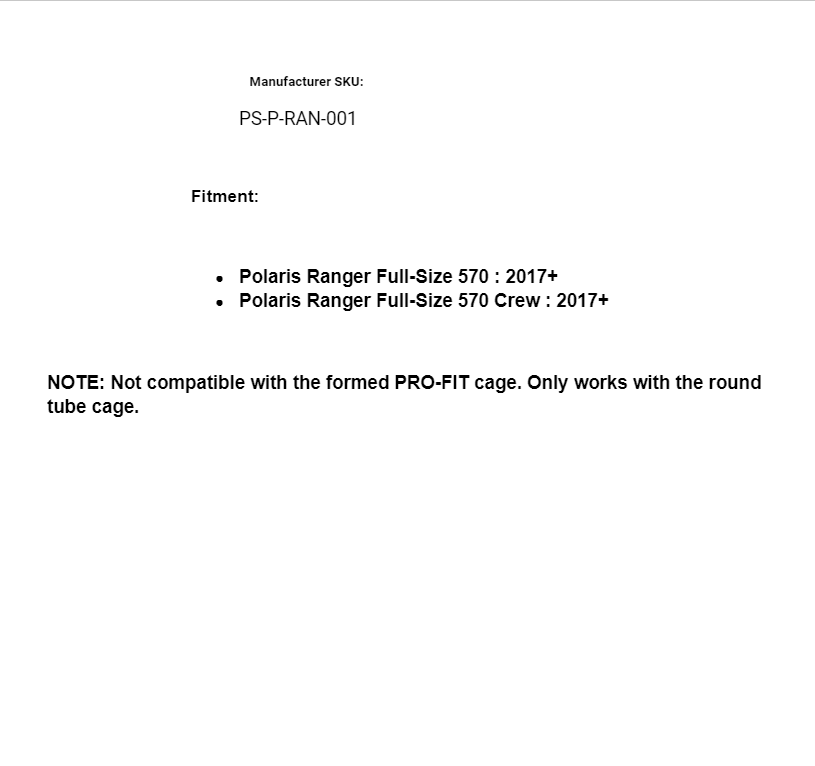 - Polaris Ranger Full-Size 570 : 2017+