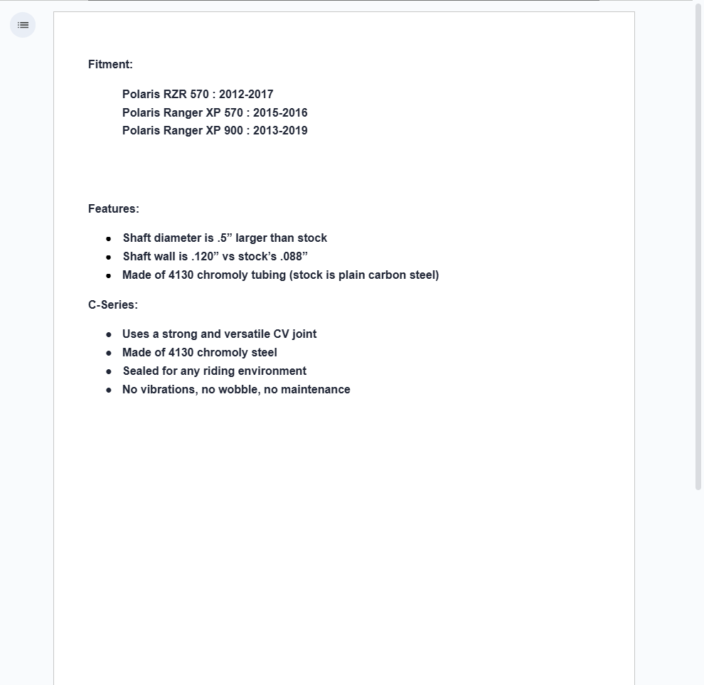 SuperATV’s Rhino Driveline Prop Shafts by SuperATV are strong enough and durable enough to handle everything your Polaris Ranger XP 900 can give and more. They’re the strongest prop shafts you can get, and they’re paired with U-series U-joints that wear less and run smooth. Bolster your driveline’s backbone with SuperATV’s expertise. Upgrade to a Rhino Driveline Prop Shaft and drive your Polaris Ranger XP 900 like you never could before.