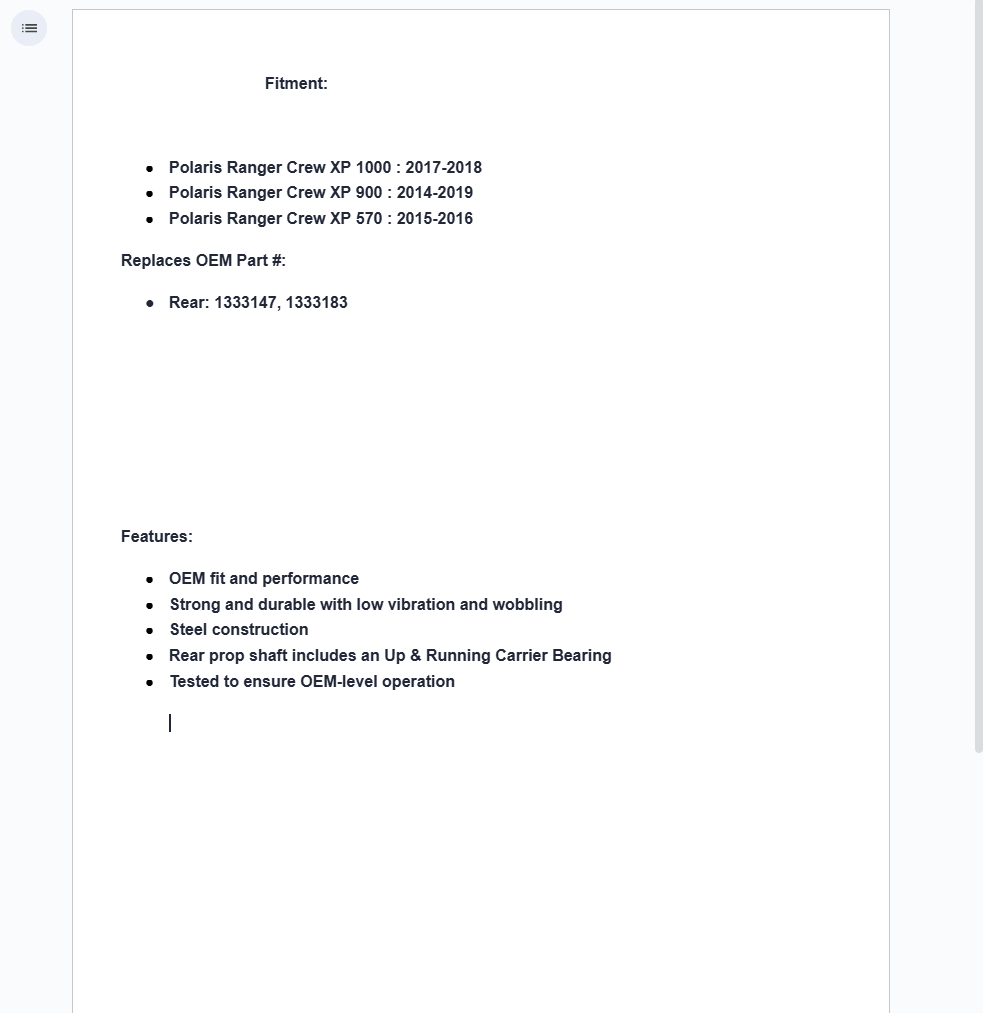We know shelling out big money for replacement parts is nobody’s idea of a good time. When you need a break-fix, get an Up & Running Polaris Ranger XP 1000 Crew Prop Shaft Replacement from SuperATV. It’s just as good as OEM but cost half as much. When you need reliable parts for standard repairs, choose SuperATV.
