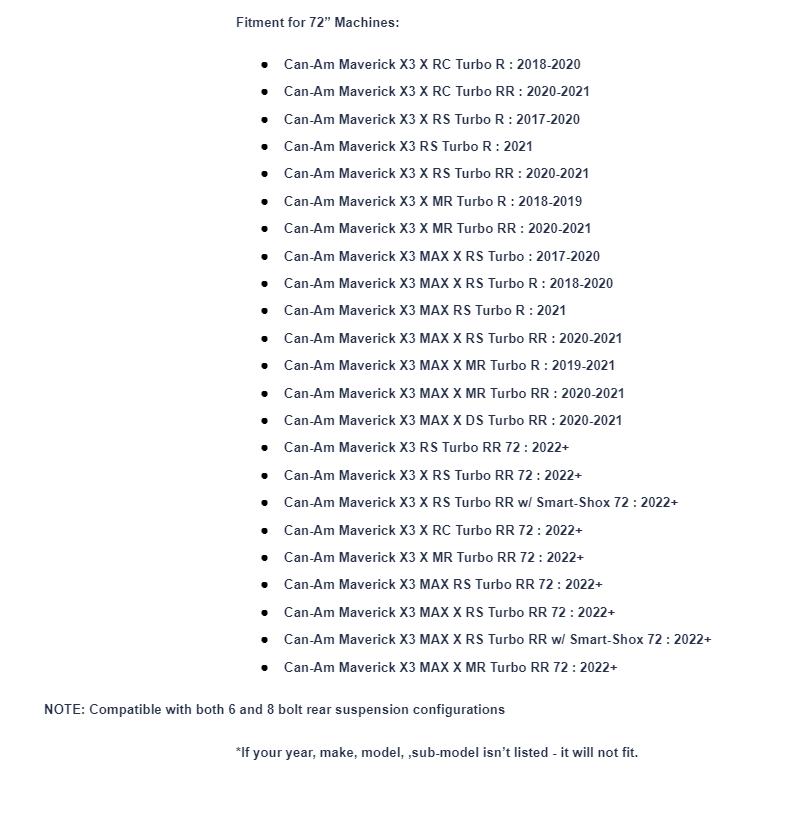 NOTE: Compatible with both 6 and 8 bolt rear suspension configurations