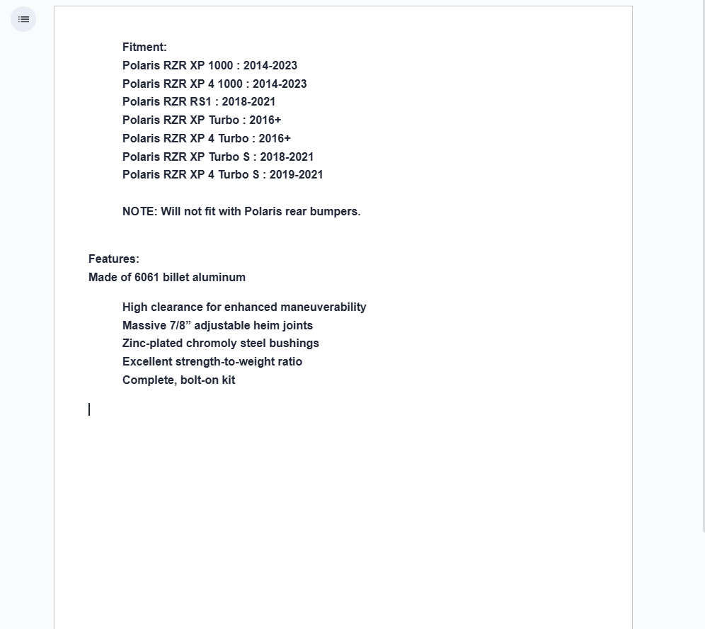 Billet aluminum gives you an amazing strength-to-weight ratio, meaning these radius arms are super strong and lighter than stock. Combine that with sturdy adjustable heim joints and extra clearance to avoid banging into obstacles, and you get radius arms that stand up to abuse with superior performance. You’ll be able to push your machine to its limits knowing that your suspension is up to the task.