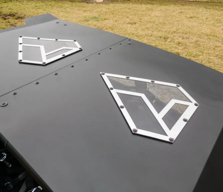 Do comfort and battle go together? Well, they do now! We’ve designed this roof specifically from aluminum material because it’s the best at blocking heat. And we included a 1/4” piece of tinted polycarbonate under the sunroof so you still get that open-cab feeling without the UV rays. And because we know Mother Nature has a mind of her own, our clever design channels water away from your cab so you stay dry.