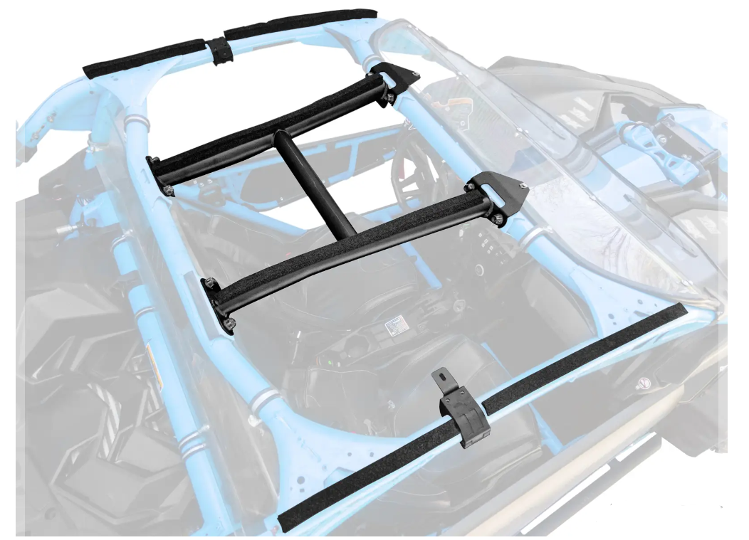 We make our roof with 5052 aluminum alloy. This high-chromium alloy gives our roof superior strength and impact resistance. It can stand up against branches, boulders, and rollovers. We boost its strength even further by removing the stock X3 support bars and replacing them with our own 1.75” diameter steel support bars to give the roof a straight, rigid mounting point.
