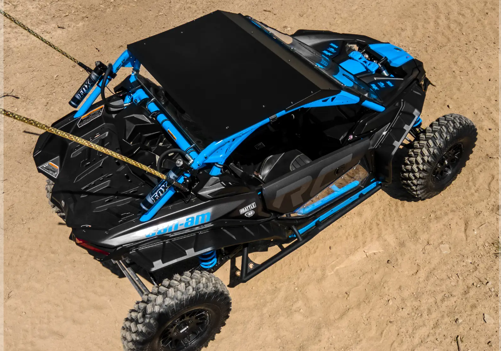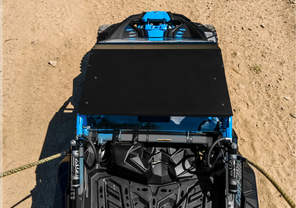 A low-profile flat-top Maverick X3 with the professional finish of an aluminum roof is sure to make it stand out from the crowd. Cruise through the trails, keep the sun out of your face, and look good under your new roof and chopped-cage-style UTV look.