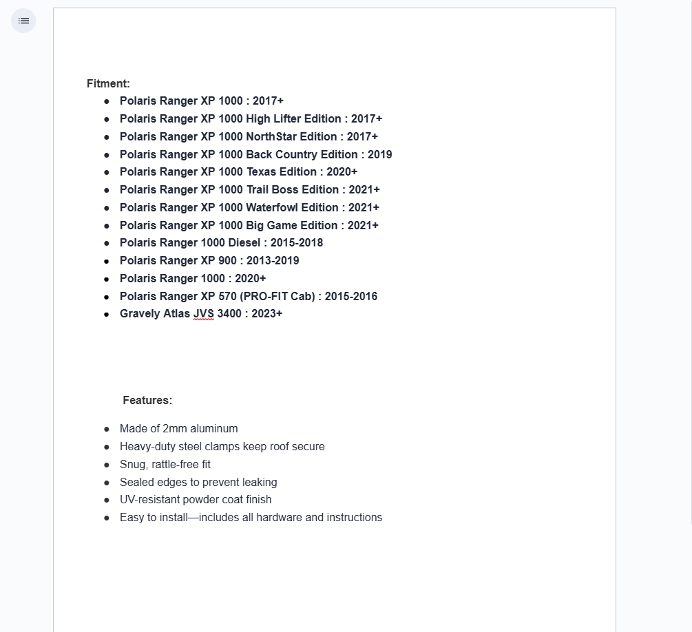 | Polaris | Ranger 1000 | -- | 2024 | |