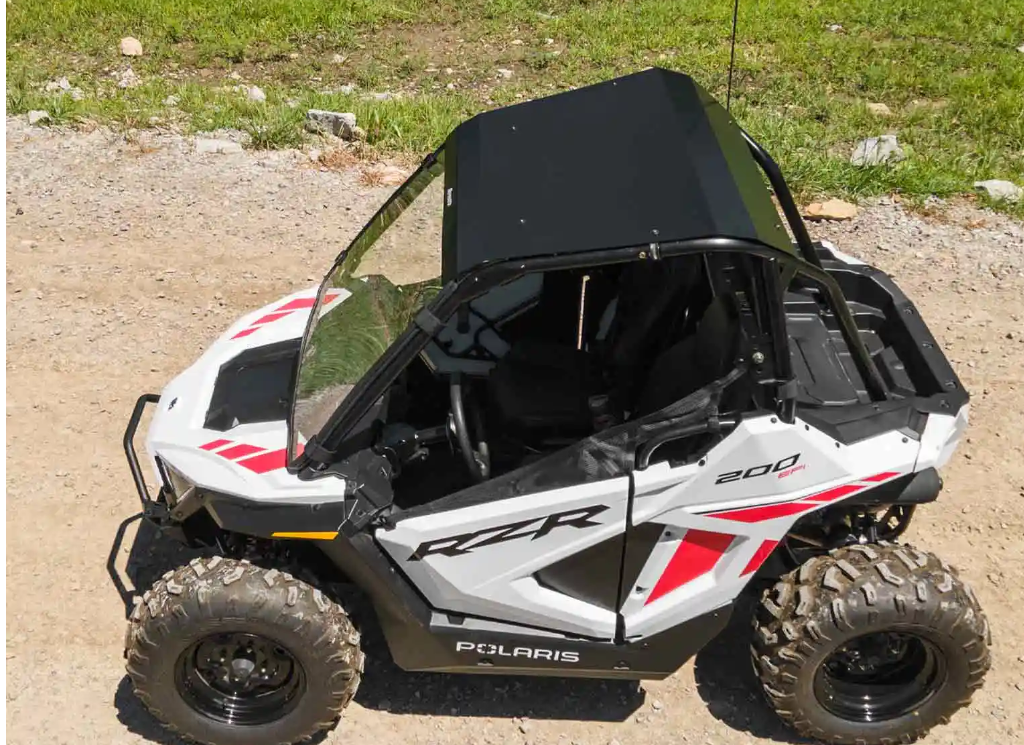 School’s out and your kid will most likely be spending their time in the cab of their RZR 200. You’re in luck—with our aluminum roof, you can keep the sun off and the heat out. There’s no better material for the job. Not only does it keep you cool, but it also directs the rain away from the cab using built-in drip edges.