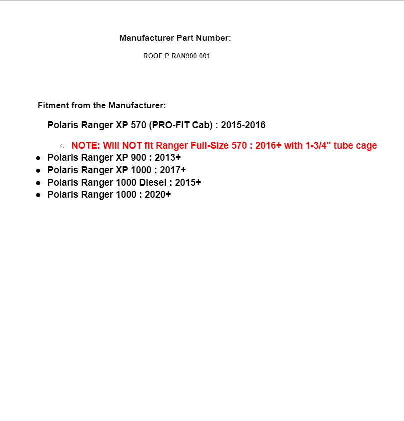 - NOTE: Will NOT fit Ranger Full-Size 570 : 2016+ with 1-3/4″ tube cage
